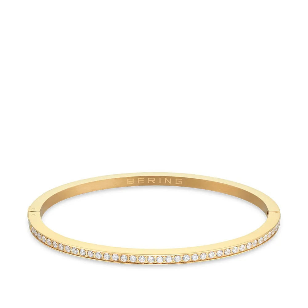 BERING Armreif Arctic Symphony Edelstahl goldfarben mit Zirkonias und Emaille weiss 17 cm