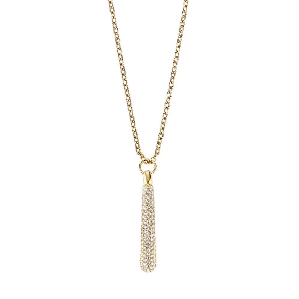 - länglicher goldfarbener Anhänger mit weissen Zirkoniasteinen verziert