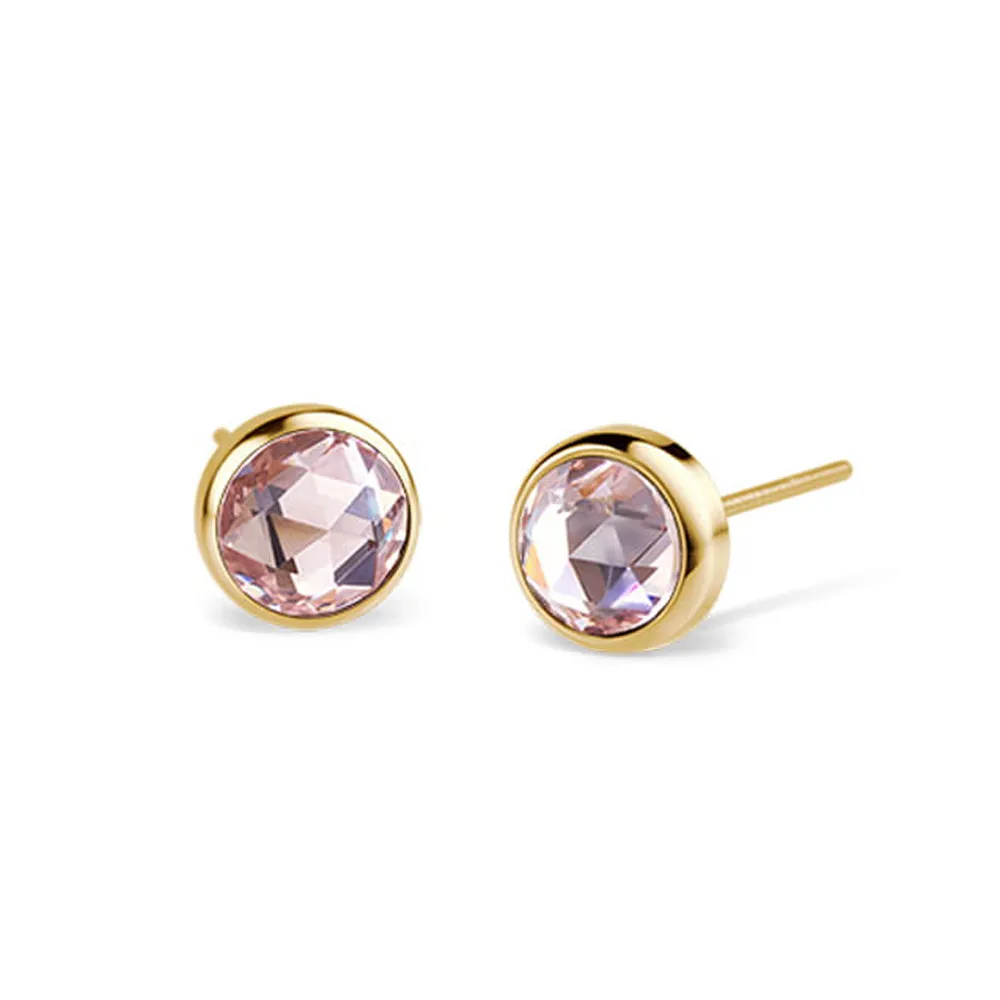 BERING Ohrstecker rund aus Edelstahl goldfarben Stein pink