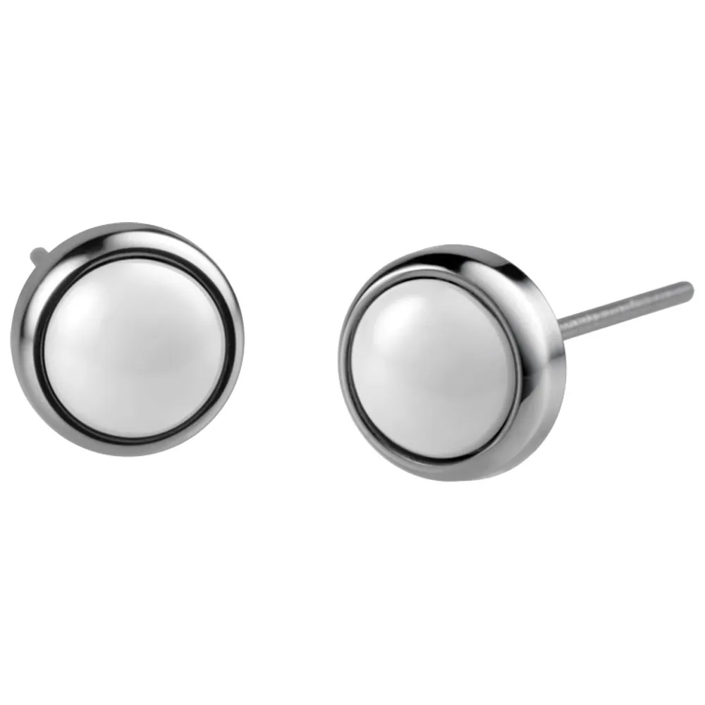 BERING Ohrstecker rund aus Edelstahl silberfarben Keramik weiss