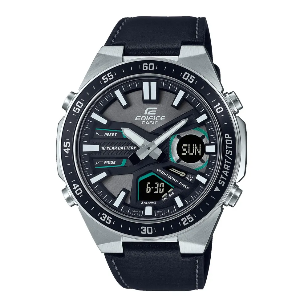 Casio Edifice Chronograph silberfarben schwarz blau Lederband EFV-C110L-1AVEF