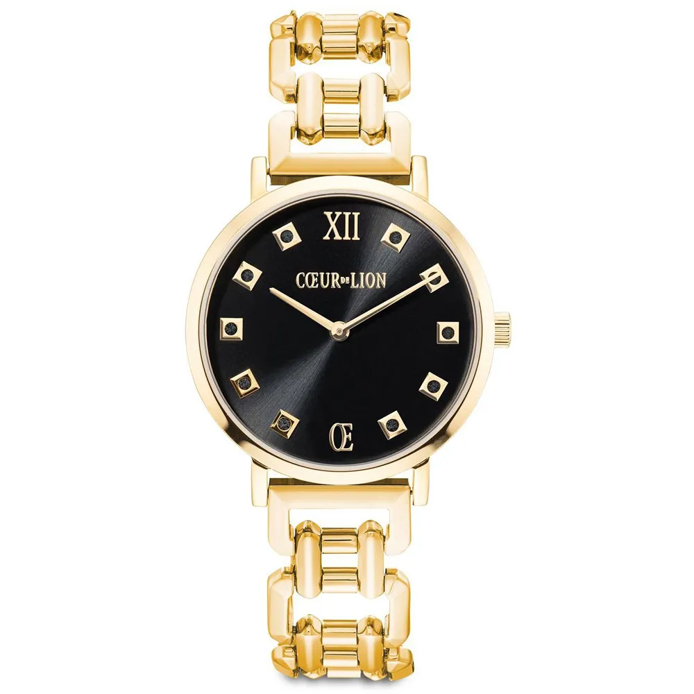 Coeur de Lion Damenuhr rund Brilliant Glamaourous Black Statement goldfarben