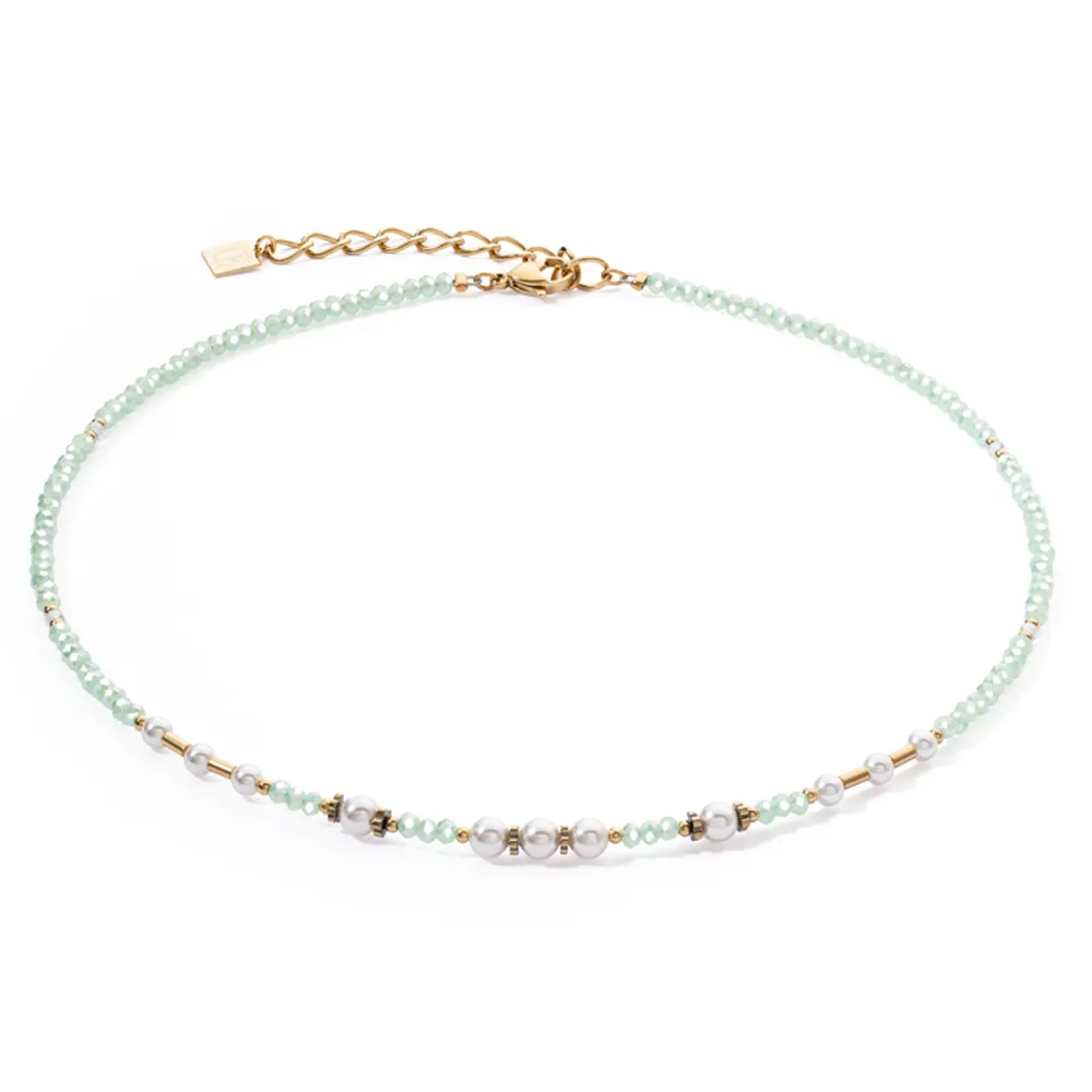 Coeur de Lion Halskette Edelstahl goldfarben grün mit Swarovski Perlen 4434/10-0520