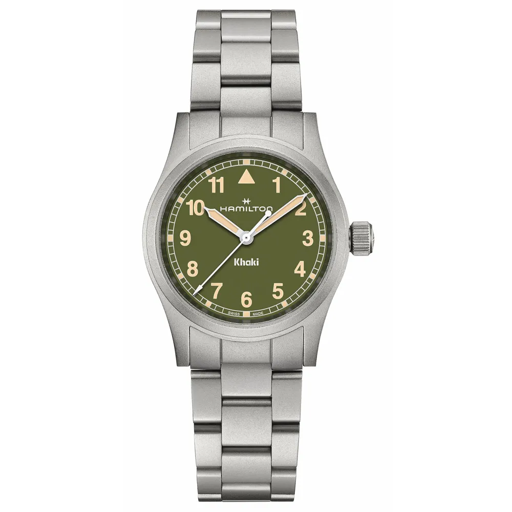 HAMILTON Unisexuhr Khaki Field 33 mm Edelstahlband Zifferblatt olivgrün