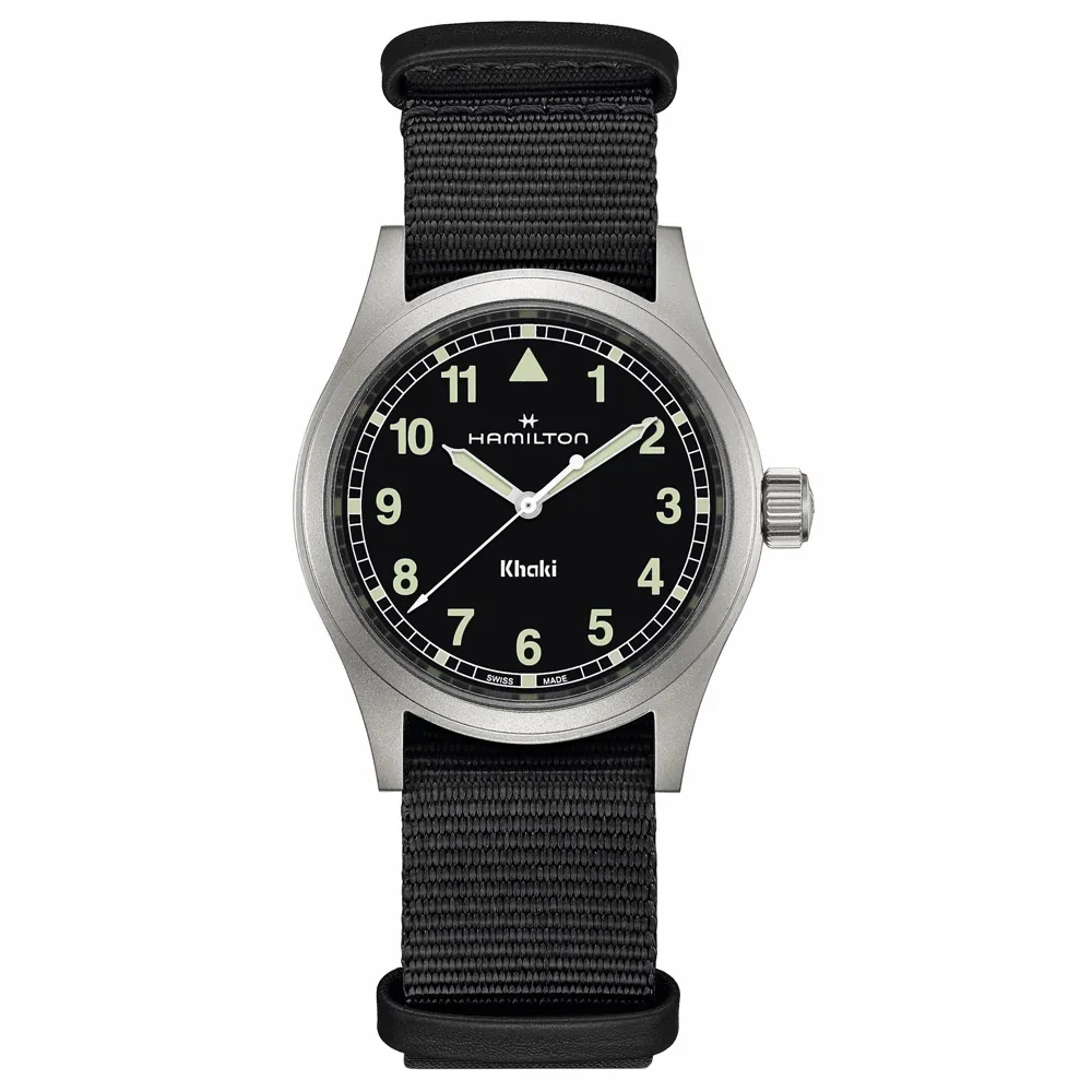 HAMILTON Herrenuhr Khaki Field Quarz Textilband schwarz 38 mm