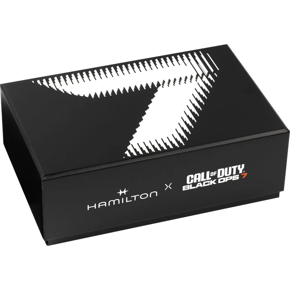 Die Hamilton Khaki Field Automatikuhr in einer Spezial Edition, in Kooperation mit dem Spielemachern von Call of Duty Black OPS 7 ist ein wahres Meisterwerk für Sammler und Gamer. Die Armbanduhr mit ihrem robusten Design und dem präzisen schweizer Automatikuhrwerk verkörpert sie die Abenteuerlust des Spiels. Eine coole Besonderheit an dieser Edition ist die spezielle Uhren Aufbewahrung in der Collector Box, der nicht nur einen sicheren Aufbewahrungsort der Uhr bietet, sondern auch das unverwechselbare Image des legänderen Spiels wiederspiegelt. Ideal für echte Fans, kombiniert sie Funktionalität mit Stil und bringt das spannende Gefühl des Gameplays direkt in den Alltag. Ein Must-Have für jeden Call of Duty Enthusiasten und Uhrenfreak.