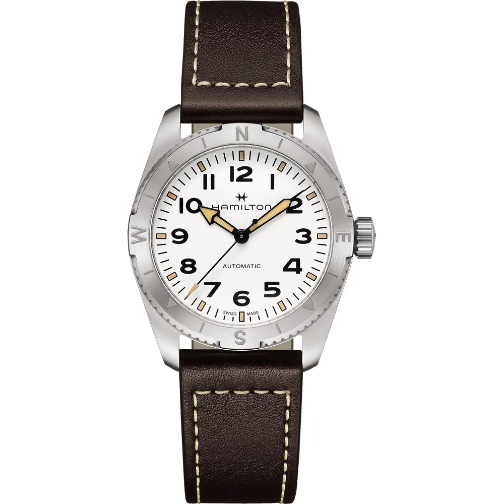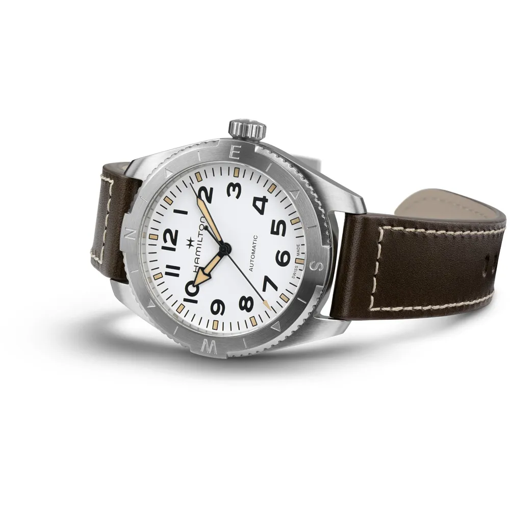 HAMILTON Khaki Field Expedition Automatik 37mm silberfarben weiss Lederband braun H70225510