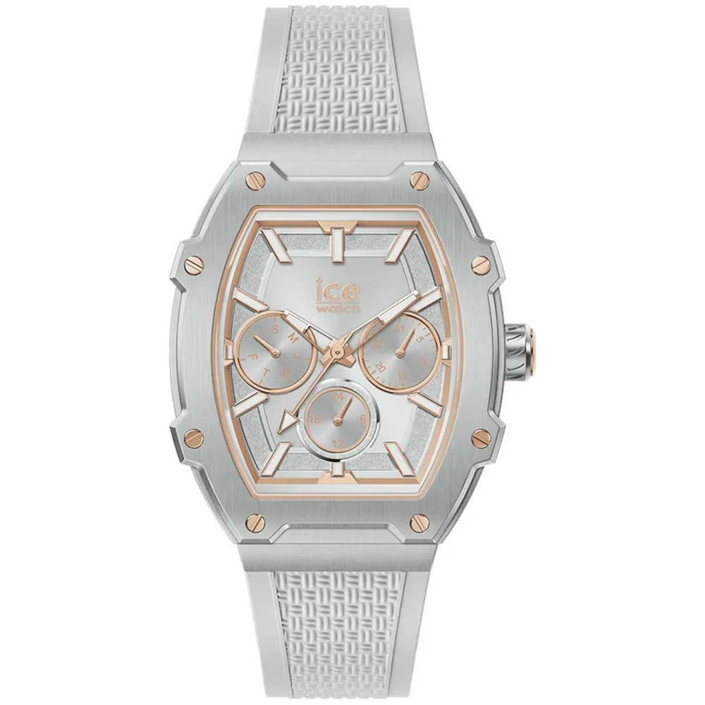 Ice Watch Damen Quarzuhr Ice Boliday eckig grau rosegoldfarben Silikonband grau