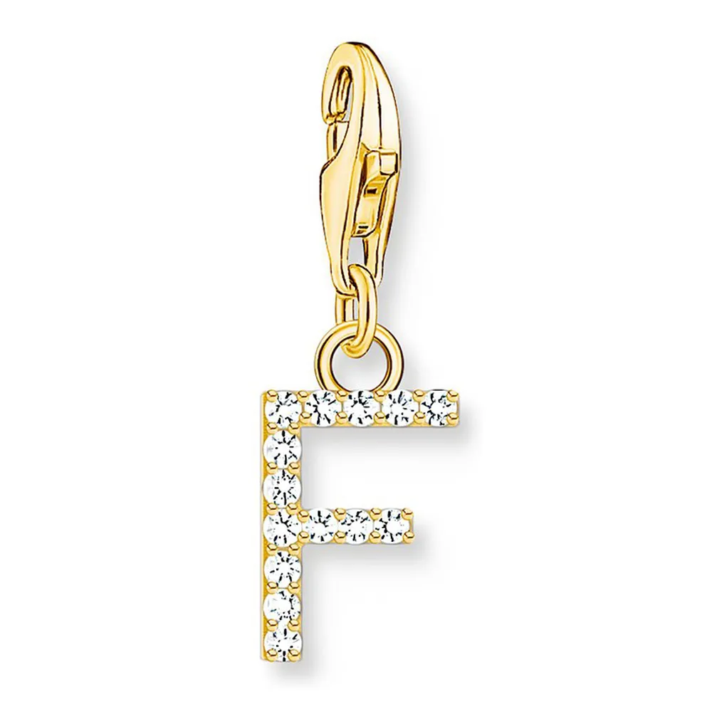 - Charm-Anhänger mit dem Buchstaben F aus 925er Silber, mit 750er Gelbgold-Vergoldung