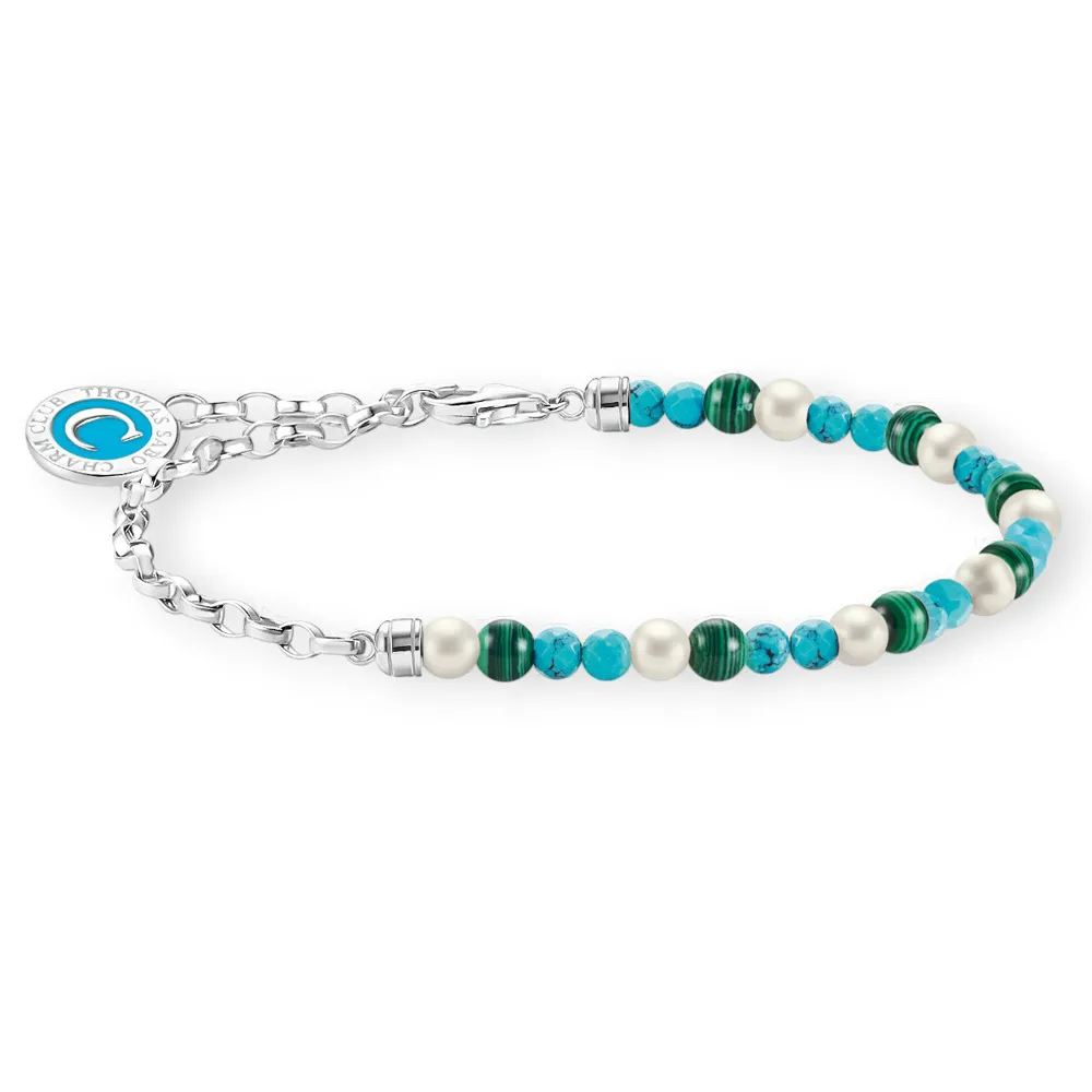 Thomas Sabo Charmista Armband 19 cm mit grünen Steinen und Perlen Silber 925