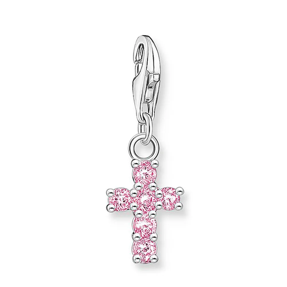 Thomas Sabo Charm Anhänger Silber 925 Kreuz mit rosa Zirkonias