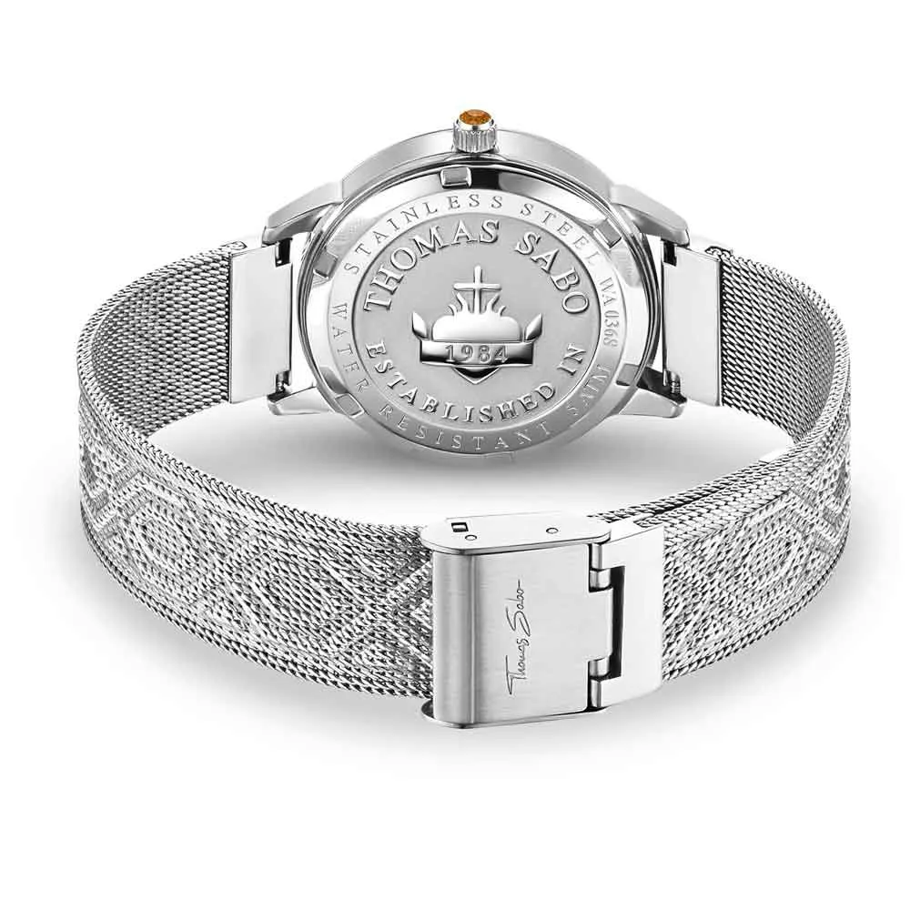 - Damenuhr mit Edelstahl Milanaisearmband mit grafischen Strukturen designt von Thomas Sabo und Schiebeverschluss