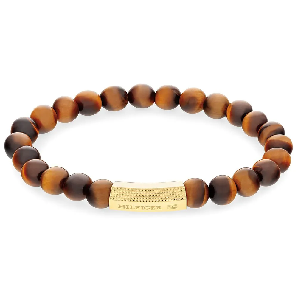 Tommy Hilfiger Herrenarmband Edelstahl goldfarben Farbstein braun