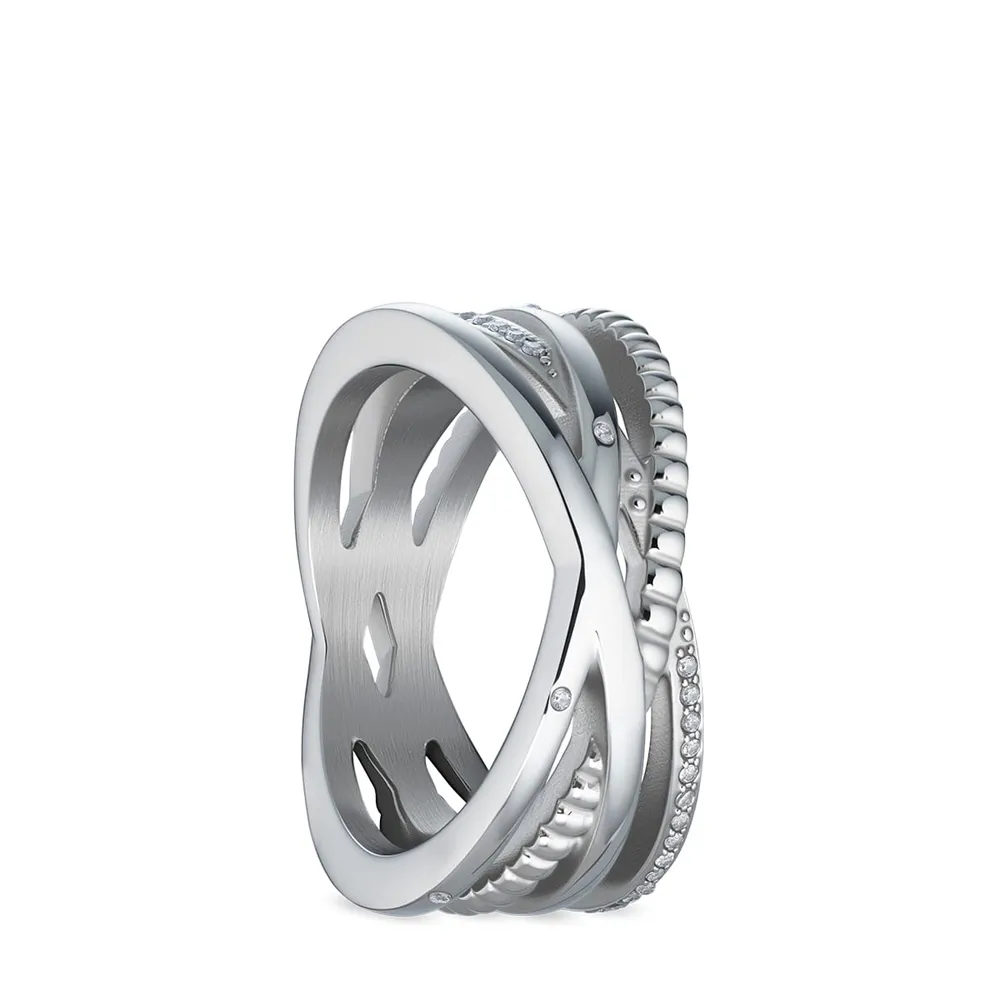 BERING Ring mehrreihig Edelstahl silberfarben Gr. 60 mit Zirkonias