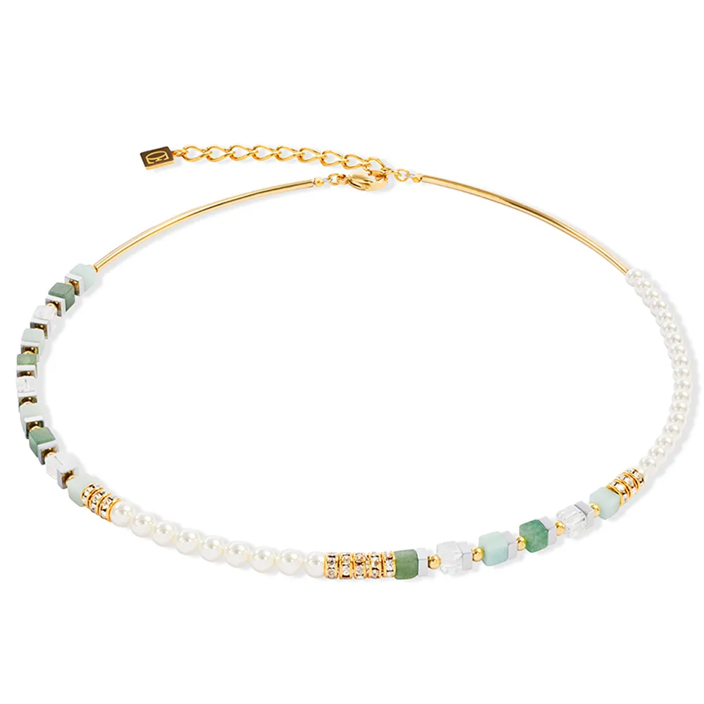 Coeur de Lion Halskette goldfarben grün weiss Crystal Pearls