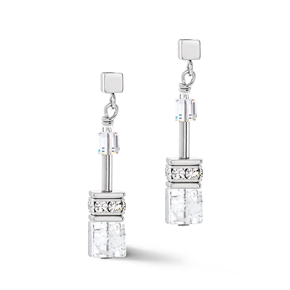Coeur de Lion Ohrringe Geo CUBE Iconic Nature silberfarben weiss 3018/21-1417