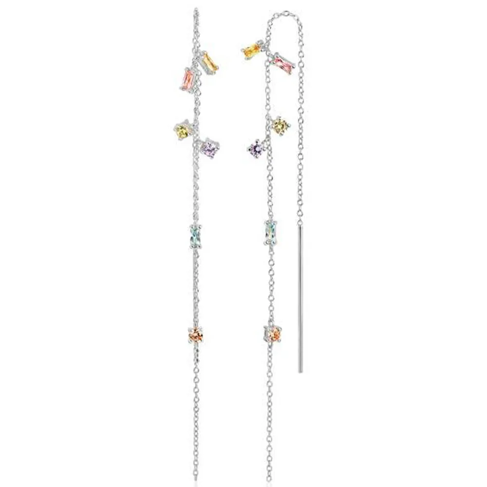 SIF JAKOBS Ohrhänger Princess Chain mit bunten Zirkoniasteinen SJ-E22031-XCZ-SS