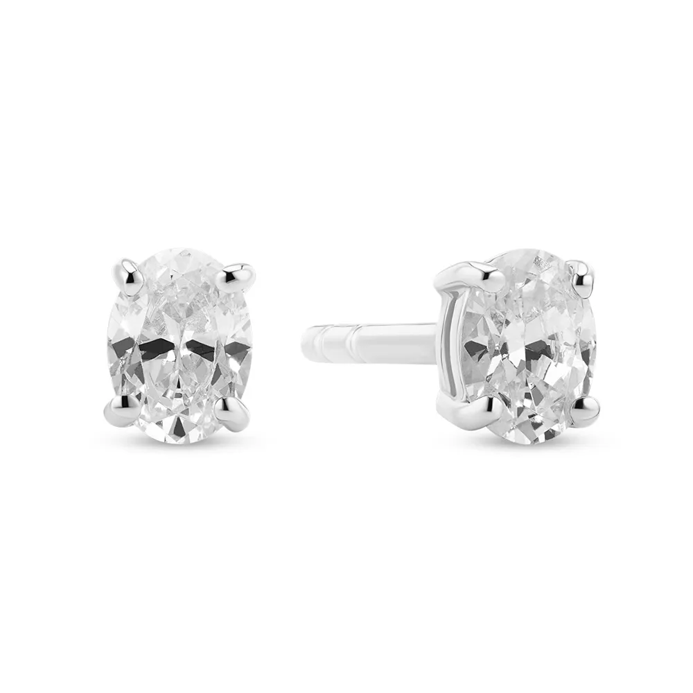 SIF JAKOBS Ohrringe Ovale Zirkonias 925er Silber - Ohrstecker aus 925er Sterling Silber
