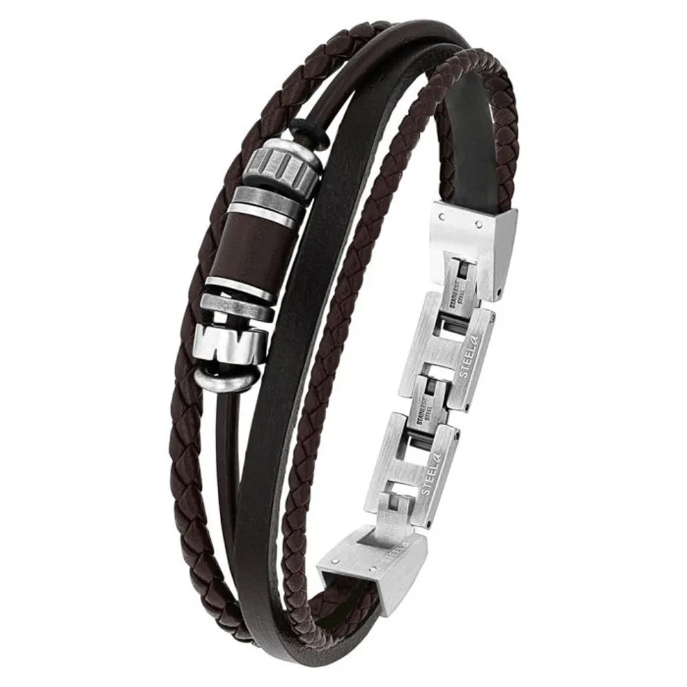 s.Oliver Herrenarmband mehrlagig Lederbänder braun mit Beads Edelstahl 2038871