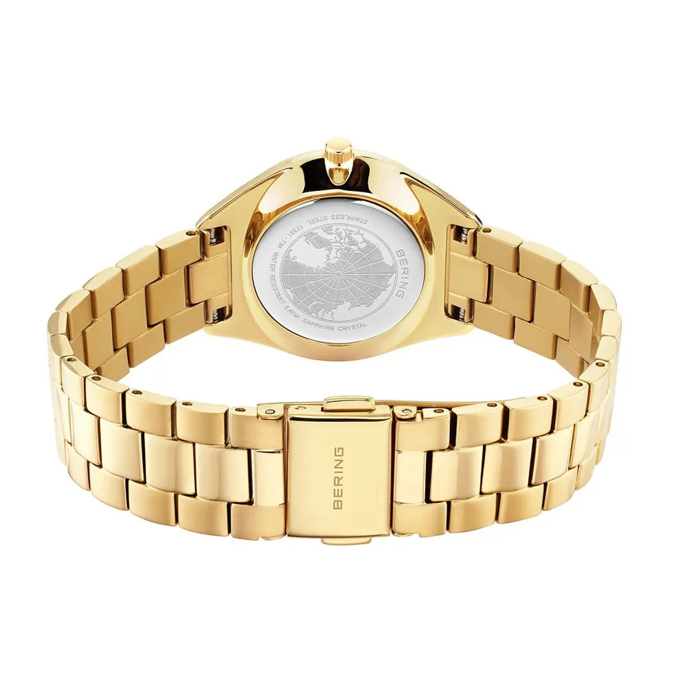 BERING Damenuhr Solar goldfarben mit Gliederband Zifferblatt Perlmutt 17331-734