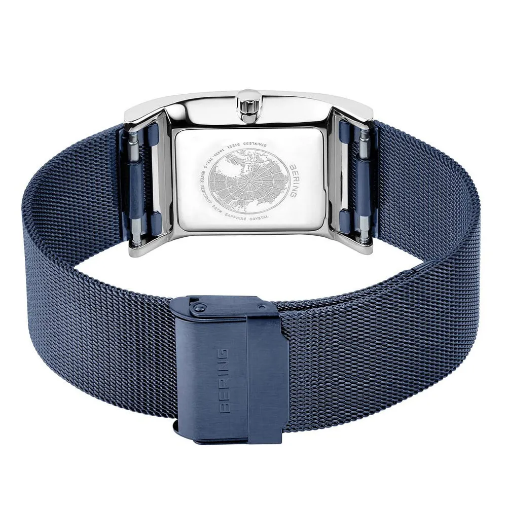 BERING Damenuhr eckig blau mit Milanaiseband und Zirkonias