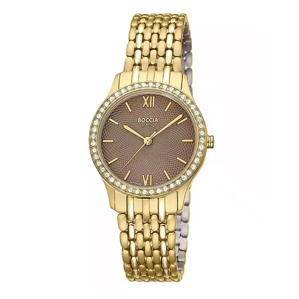 Boccia Damenuhr Titan Saphirglas goldfarben braun mit Zirkonias 3376-03