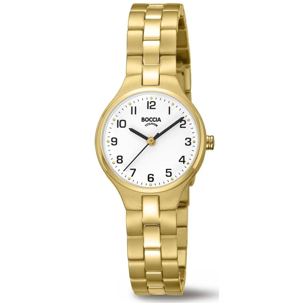 Boccia Damenuhr Titan goldfarben Zifferblatt weiss 3330-03