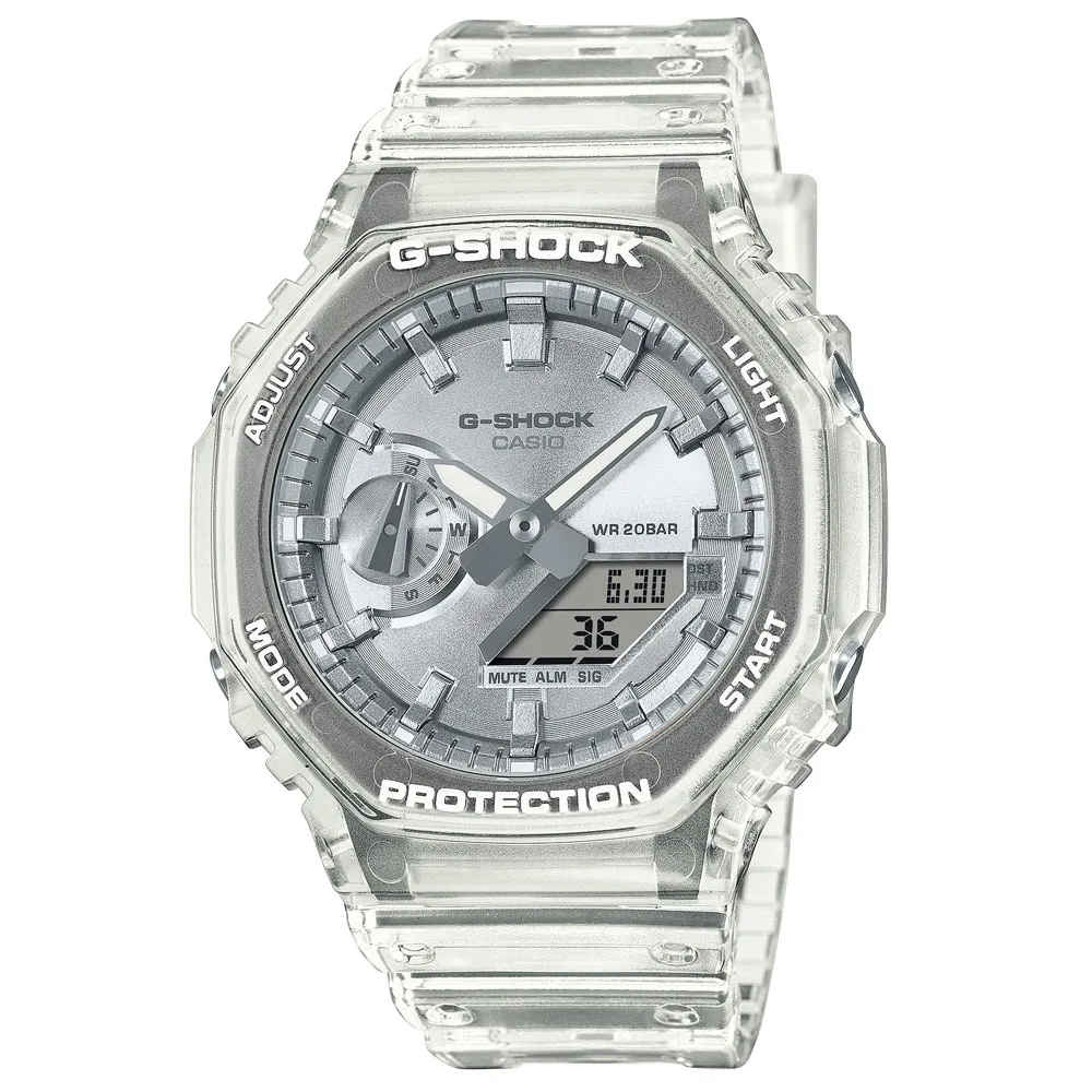 Casio G-Shock Herrenuhr Classic transparent Metallzifferblatt silberfarben