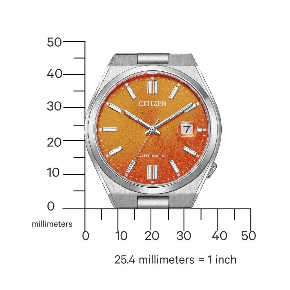 Citizen Automatik Herrenuhr Edelstahl Zifferblatt orange - Automatikuhr mit Werk Kaliber 8210