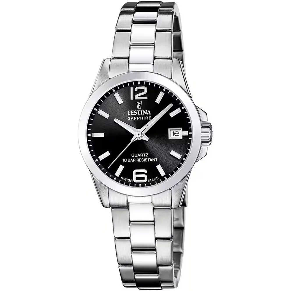 Festina Damenuhr Swiss Made Edelstahlband Zifferblatt schwarz