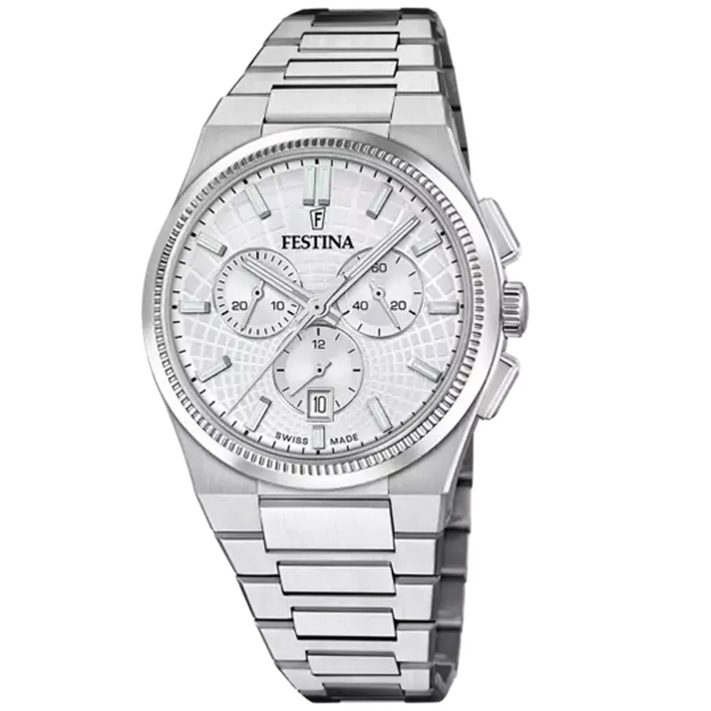 Festina Montre Rive Swiss Made Herrenuhr Quarz silberfarben Chronograph - Festina Quarzuhr Swiss Made