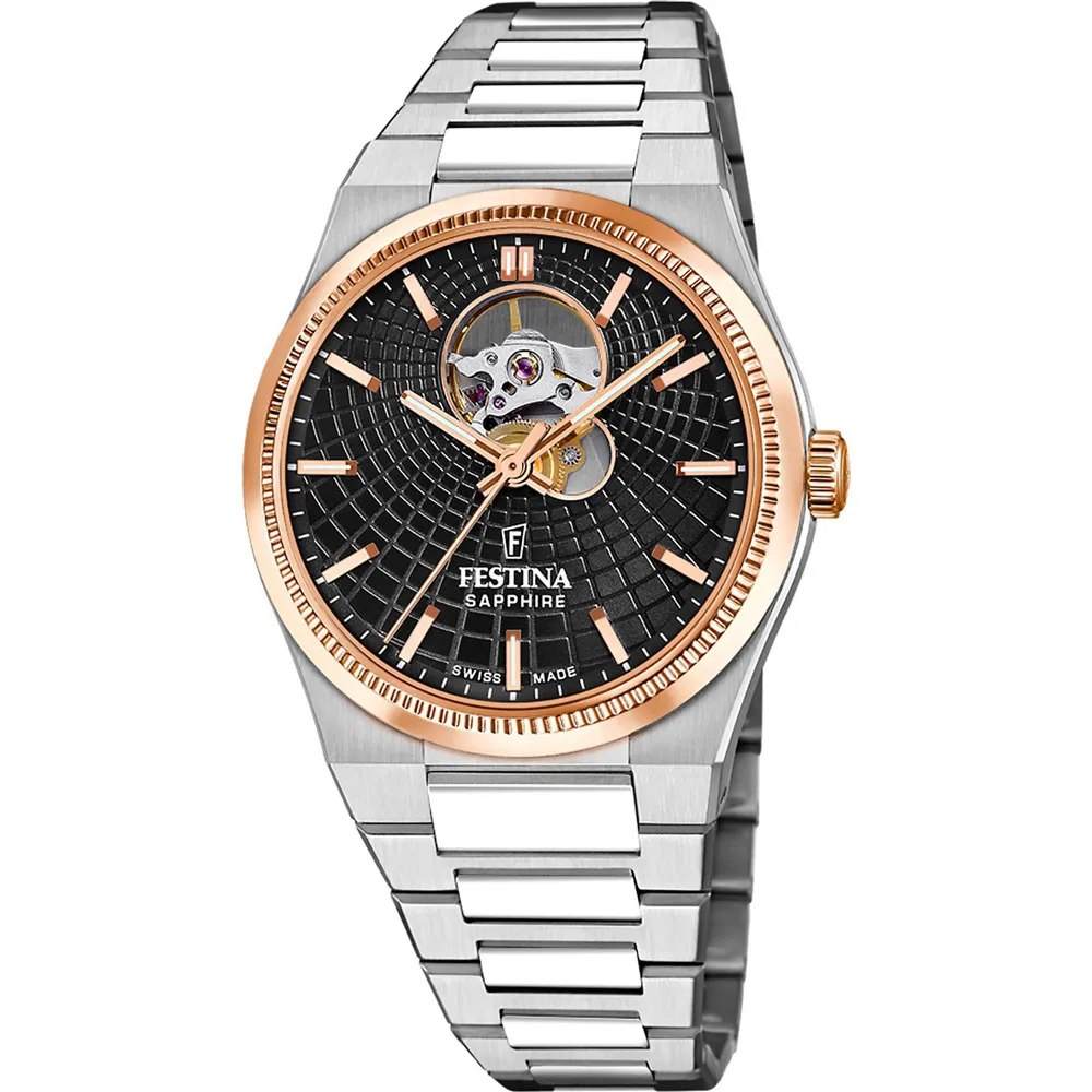 Festina Rive Swiss Made Herrenuhr Automatik Edelstahl rosegoldfarben schwarz F20061/4