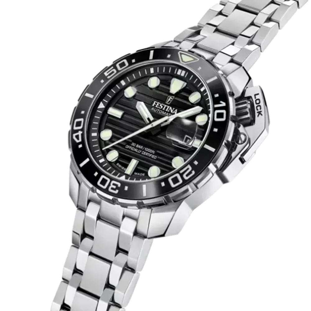 Festina Swiss Made Diver Taucheruhr Automatik silberfarben schwarz F20043/6