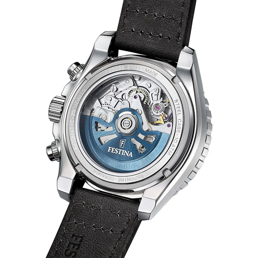 Festina Swiss Made Herrenuhr Automatik silberfarben grün Lederband schwarz F20056/2