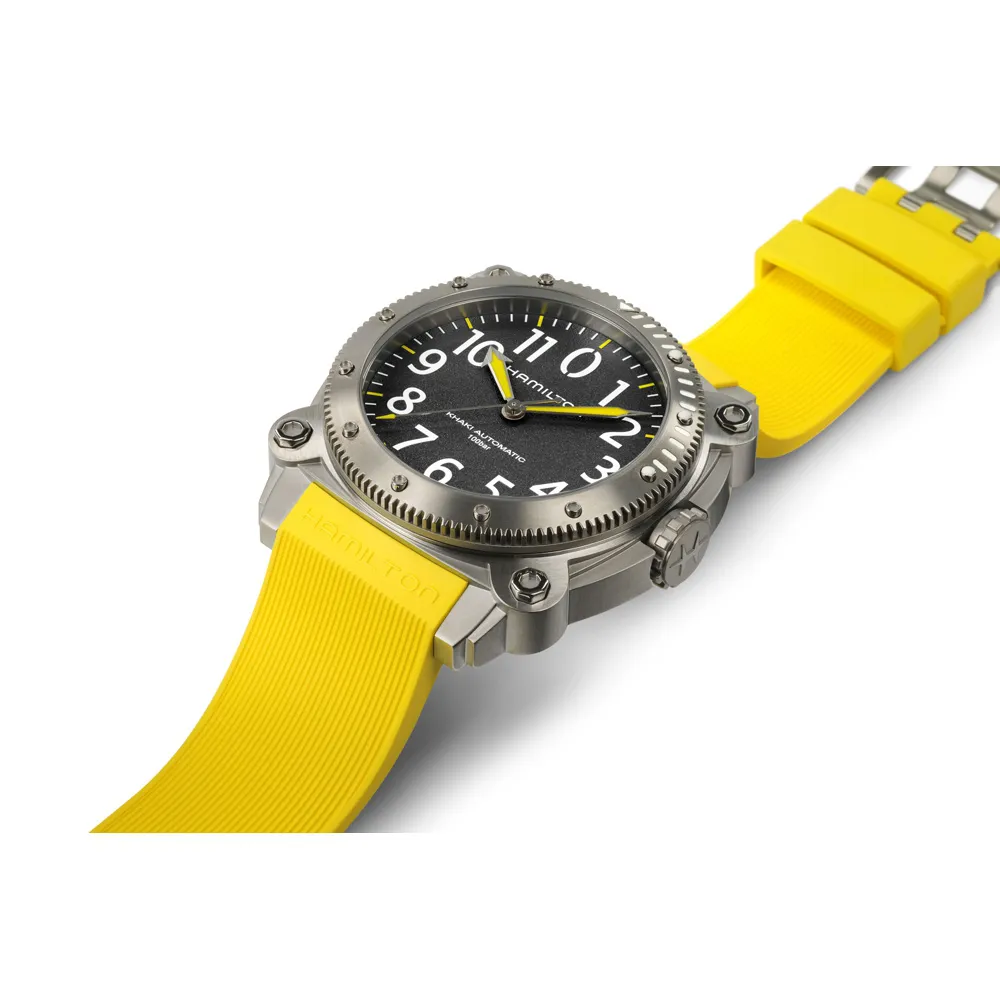 HAMILTON Herrenuhr Khaki Navy Belowzero Automatik Titanium grau gelb H78535380