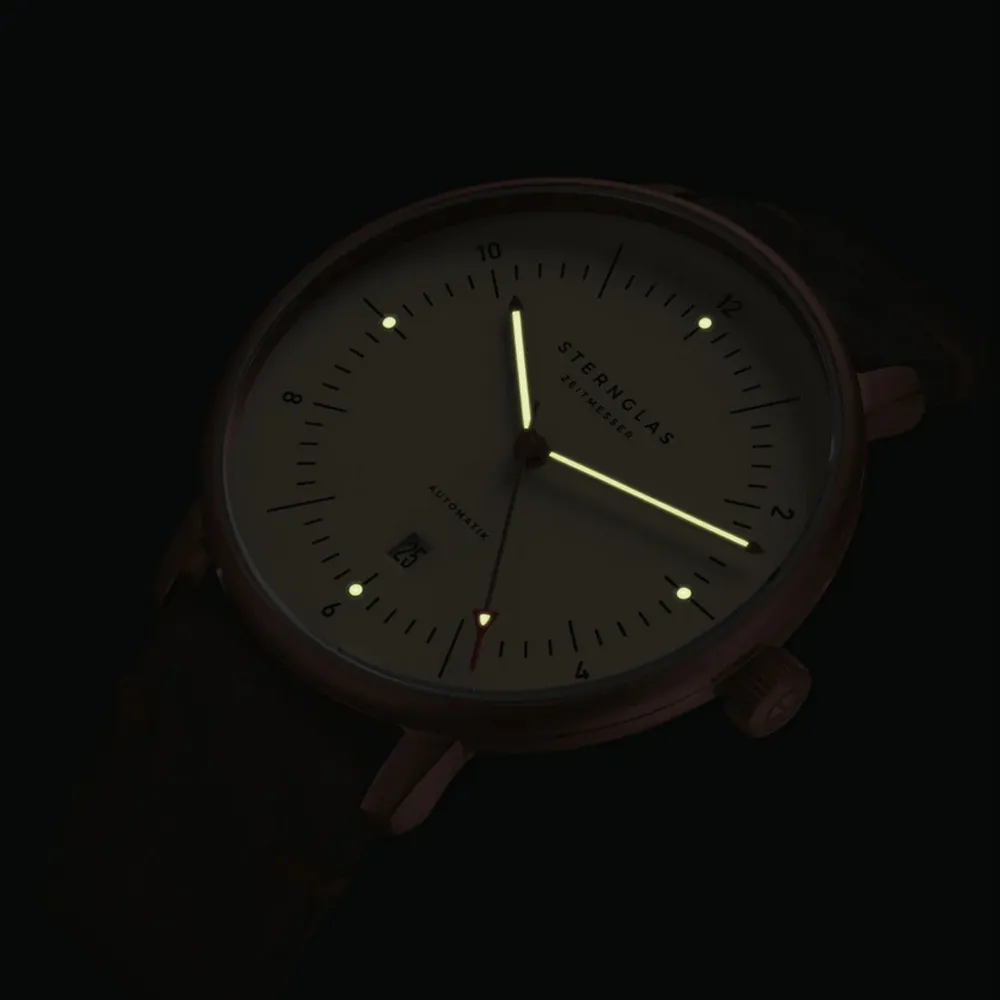 STERNGLAS Naos XL Automatikuhr alabaster bronze Vintage Lederband mocca