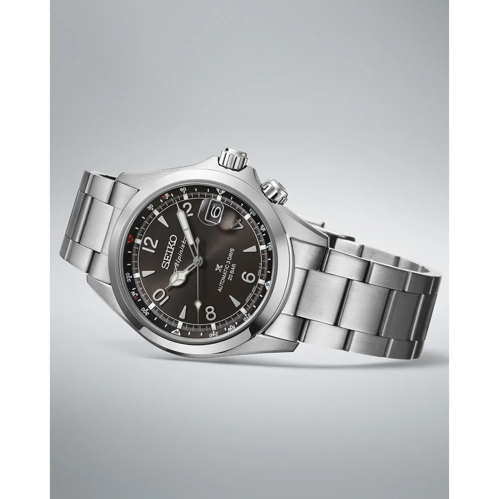 Seiko Prospex Land Alpinist Automatikuhr silberfarben schwarz Edelstahlband SPB505J1